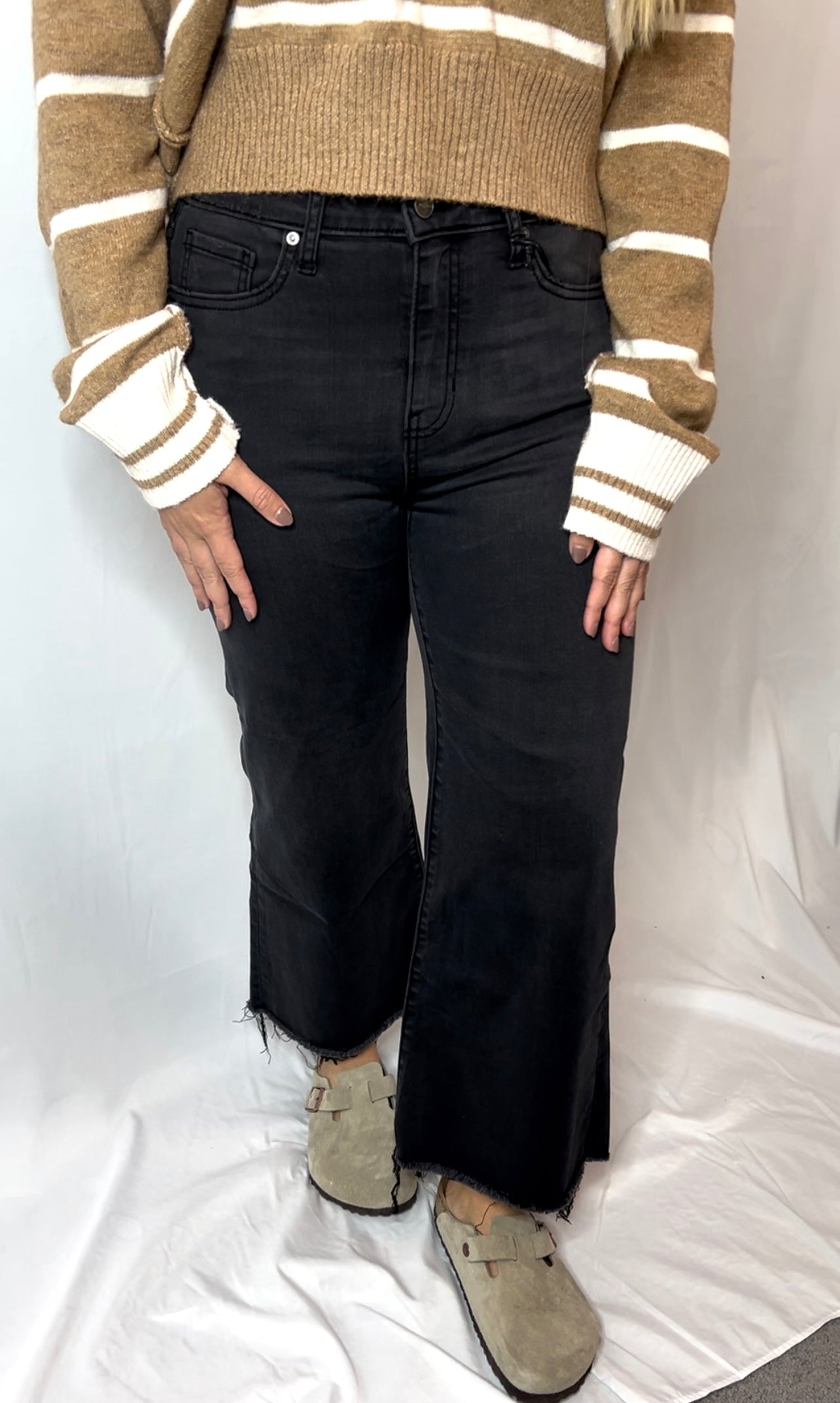 These jeans have the perfect stretch! They are high rise with a straight leg and distressing at the bottom. Fits true to size