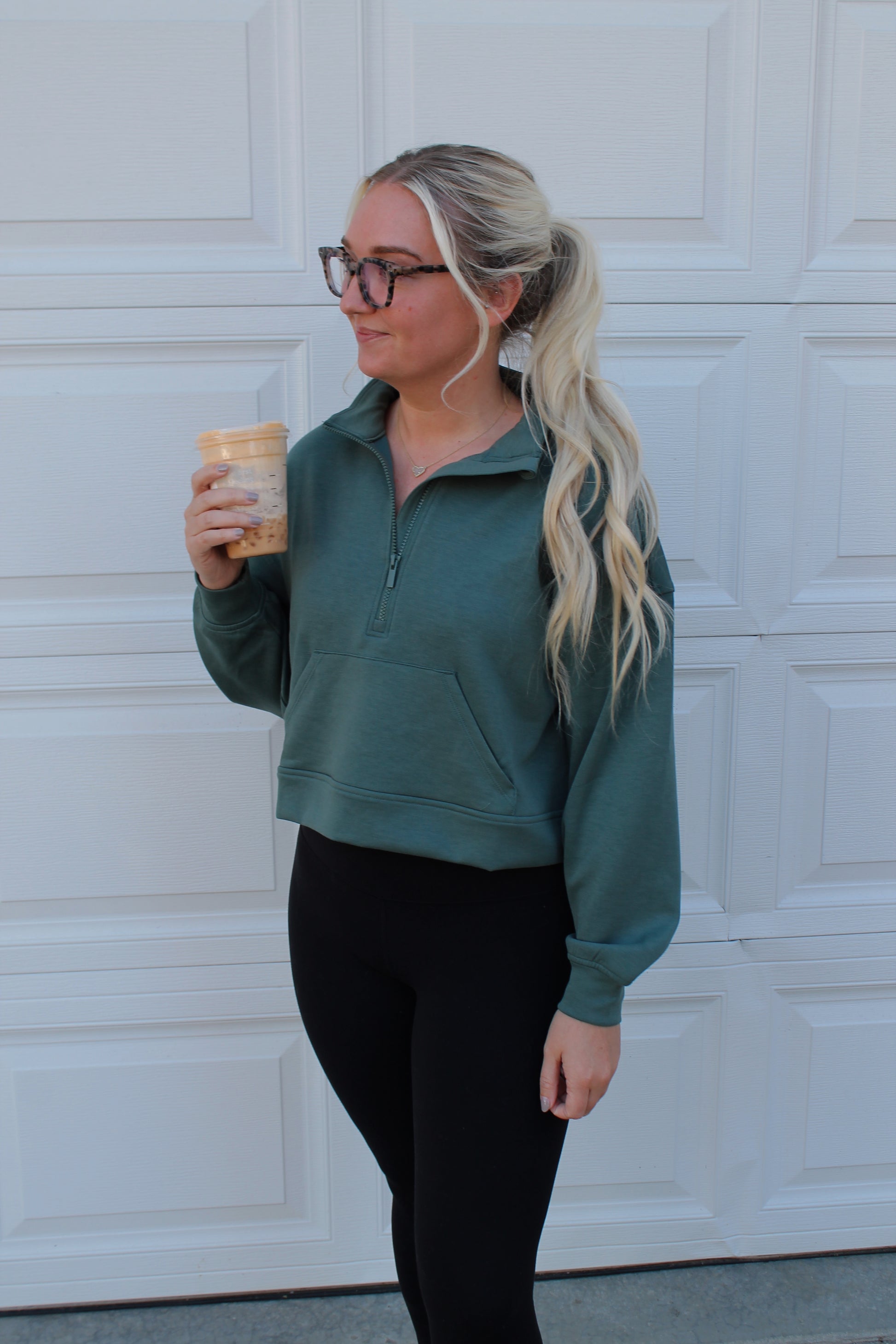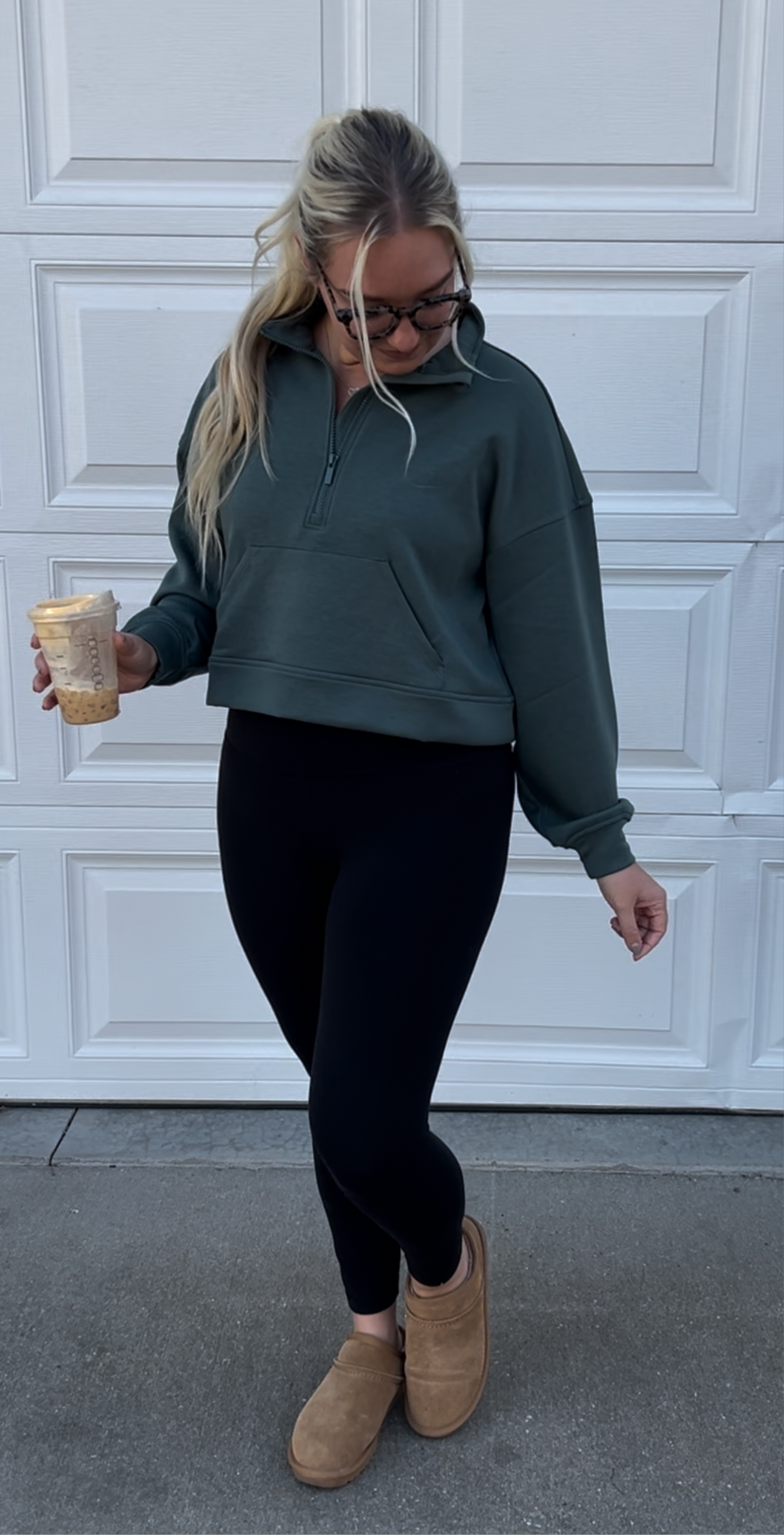 The cutest lulu scuba dupe! This pullover features a half zipper and kangaroo pockets. Buttery soft material! Cropped fit and true to size. I’m wearing my normal large