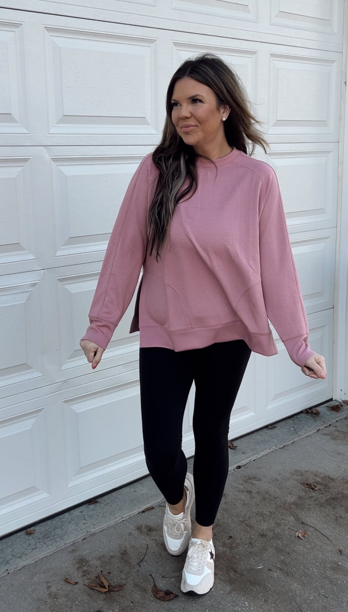 The perfect pullover with leggings! Side slit gives this pullover a flattering fit. Buttery soft material!