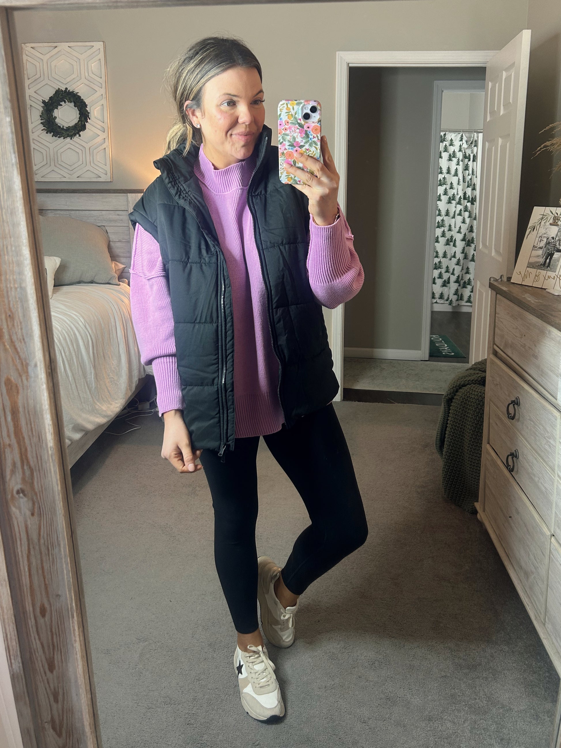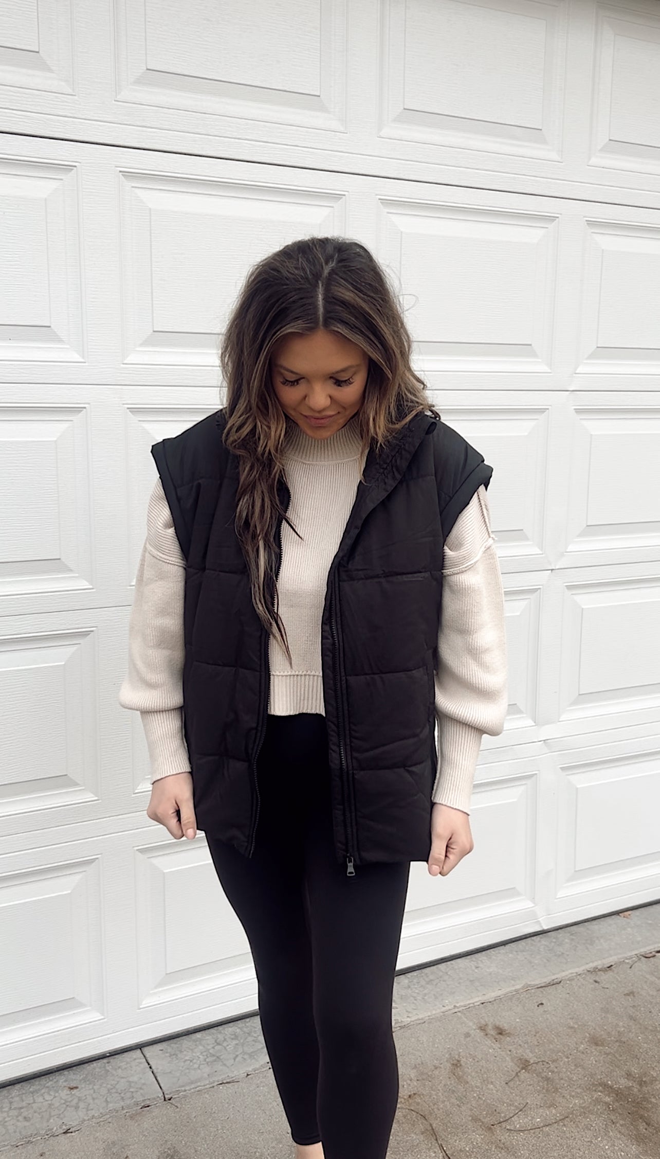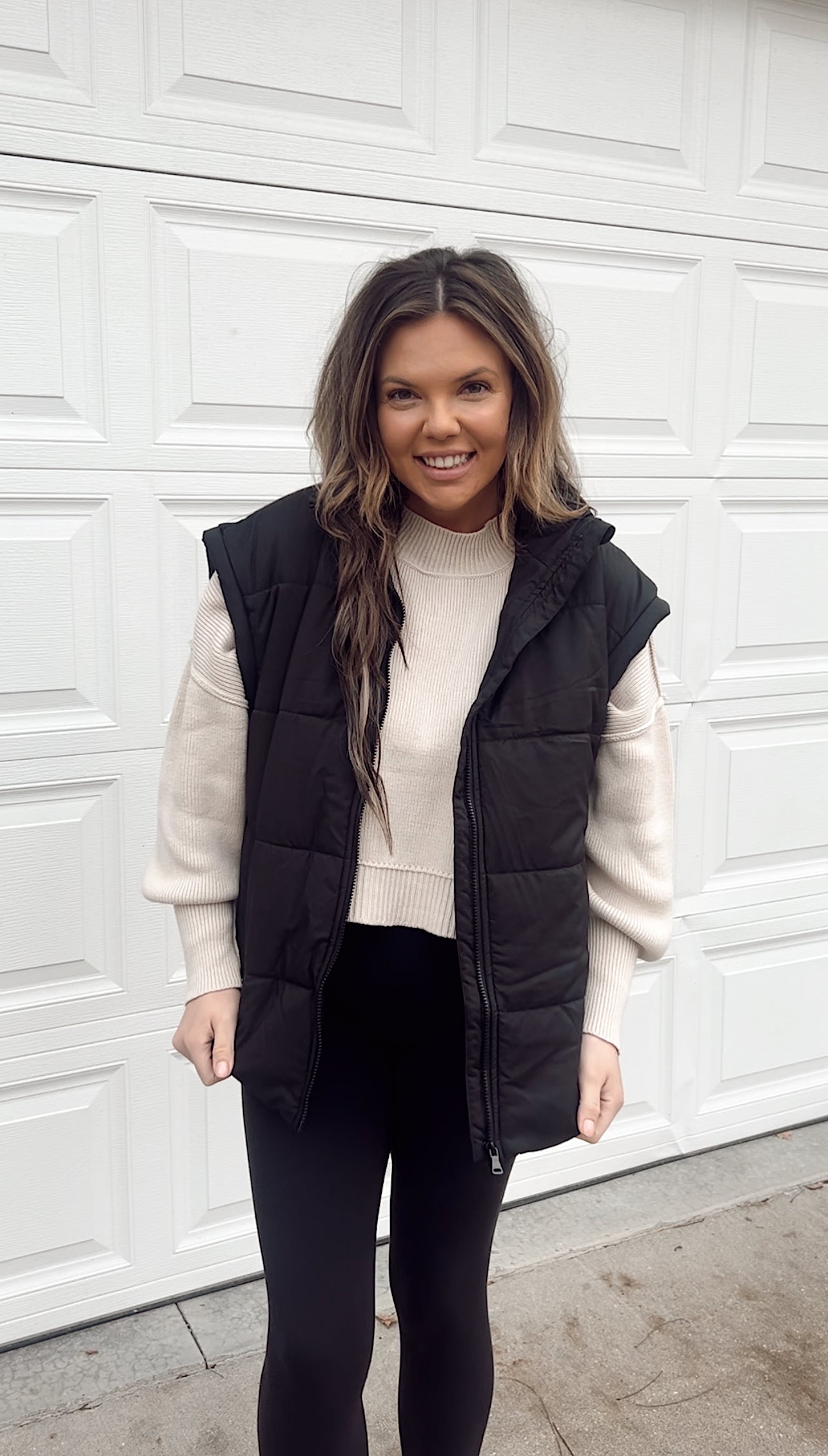 Size down!! This puffer vest boasts an oversized fit with a standing neck design for a fashionable appearance. Elevate your favorite sweatshirt with effortless comfort!